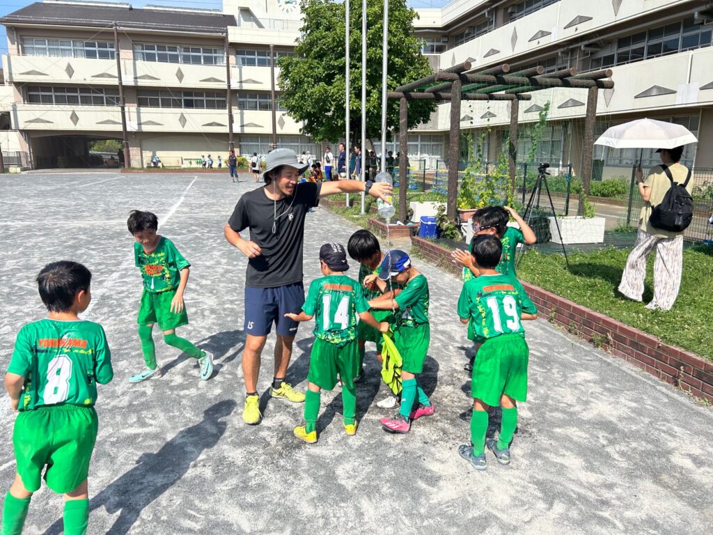 猛暑の中☀️15分ハーフ×2試合を行いましたが、水分、塩分補給、クーリングタイムをしっかりとって無事走り切りました!