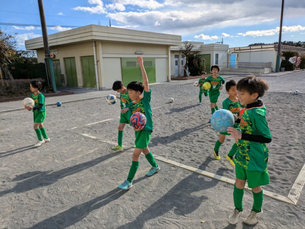 しっかりボールを保持する(簡単に手放さない、蹴り出さない)、味方同士のサポート(パスを出したらフォロー)が重要です。
