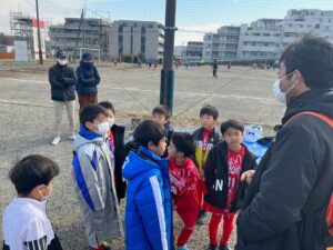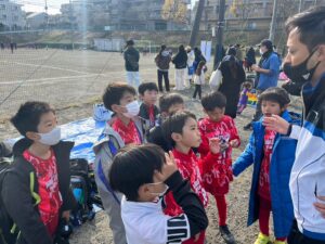1試合目の課題を子供達に伝え、❸つの負けない約束事を思い出し試合に挑みます。前半から後半に向けて、球離れや距離感も良くなりドラゴンズレッドらしい試合内容で終える事が出来ました。